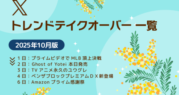 人気記事 【事業会社・代理店向けウェビナー】2025年データ総括・人気機能・2026年新サービス お申込みへ タイトル 【事業会社・代理店向けウェビナー】 ユニークビジョン×X社が語る、キャンペーンの「今」と「これから」 〜2025年データ総括・人気機能・2026年新サービス〜 対象 企業のマーケティング・SNSご担... 2025年10月29日 セミナー 【事業会社・代理店向けウェビナー】購買証明DX ~ロイヤルティを育てる顧客体験設計~ お申込みへ タイトル 【事業会社・代理店向けウェビナー】 購買証明DX~ロイヤルティを育てる顧客体験設計~ 対象 企業のマーケティング・SNSご担当者様、広告代理店でキャンペーンの企画・提案をされている方 概要 メーカー... 2025年10月10日 セミナー 【事業会社・代理店向けウェビナー】ー記憶に残るブランド体験をー 冬~春施策の提案に活かせるモーメント活用アイデア一挙公開! お申込みへ タイトル 【事業会社・代理店向けウェビナー】 ー記憶に残るブランド体験をー 冬~春施策の提案に活かせるモーメント活用アイデア一挙公開! 対象 企業のマーケティング・SNSご担当者様、広告代理店でキャンペーンの... 2025年09月09日 セミナー X トレンドテイクオーバー 一覧 2025年9月版 ◇9月1日:ショーメ、自然美への賛歌 (@Chaumet) https://twitter.com/chaumet/status/1960868595724116303 ◇9月2日:Qoo10 メガ割 (@Qoo10_S... 2025年10月01日 リサーチ X トレンドテイクオーバー 一覧 2025年10月版 ◇10月1日:プライムビデオでMLB頂上決戦 (@pvsportjp) Prime Video | スポーツを観る(今すぐライブストリーミング再生) ◇10月2日:Ghost of Yotei 本日発売 (@PaySta... 2025年11月01日 リサーチ X トレンドテイクオーバー 一覧 2025年8月版 ◇8月1日:ポケモンカードゲームMEGA (@poke_poke_001) https://twitter.com/poke_poke_001/status/1950851502651969545 ◇8月2日:新〈ビー... 2025年09月01日 リサーチ