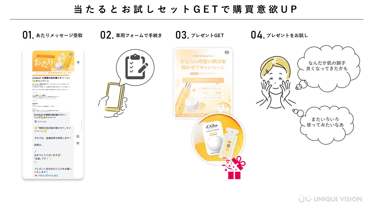 d’Alba Global Co., Ltd.は、同社のビタトーニング商品のプロモーションとして、Instagramでサンプリングキャンペーンを実施しました。