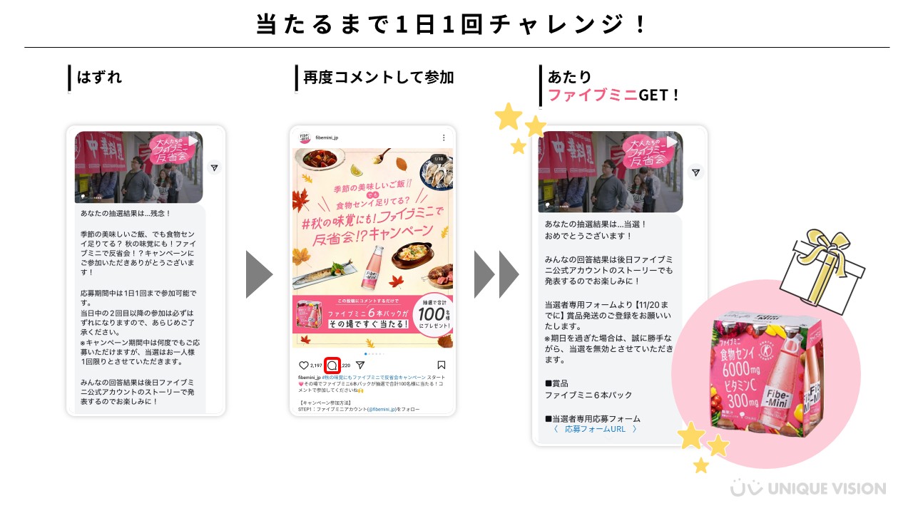 ユーザーは毎日1回抽選に参加でき、「はずれ」が出ても翌日以降に再度チャレンジできる仕組みとなっておりました。