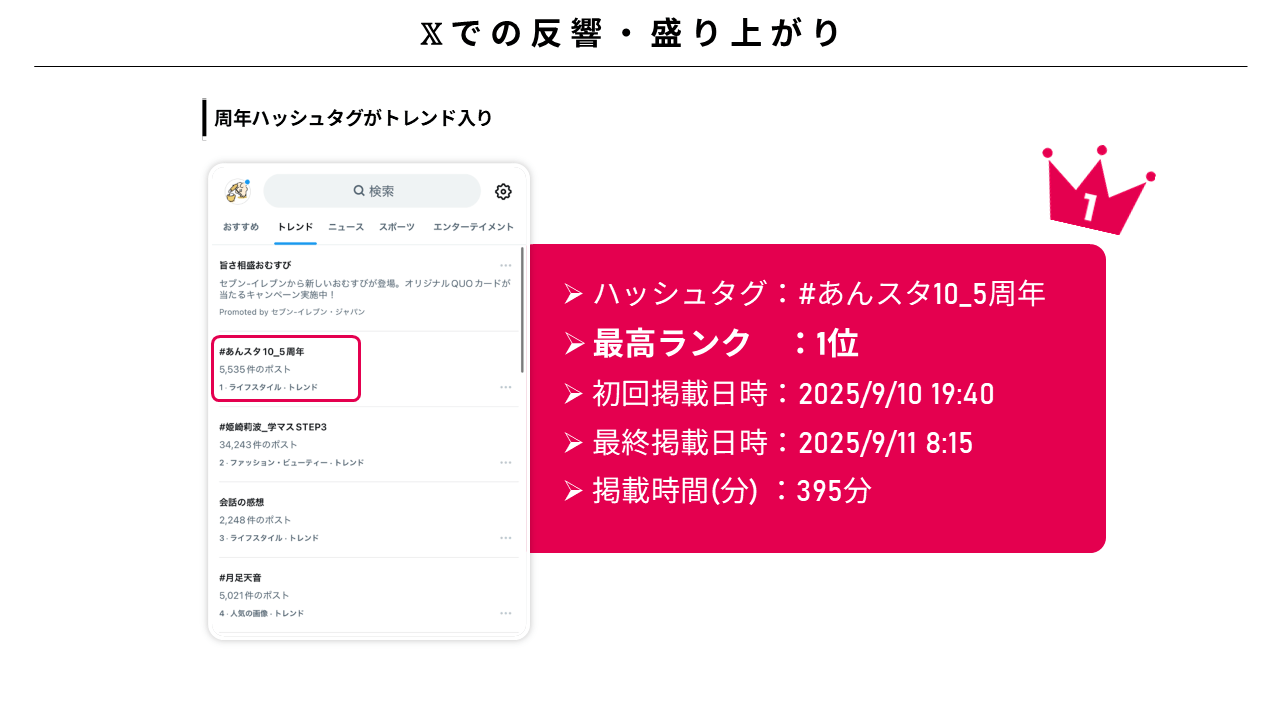 開始後まもなくXのトレンド入りするなど、たくさんの反響をいただいたキャンペーンになったかと感じております。