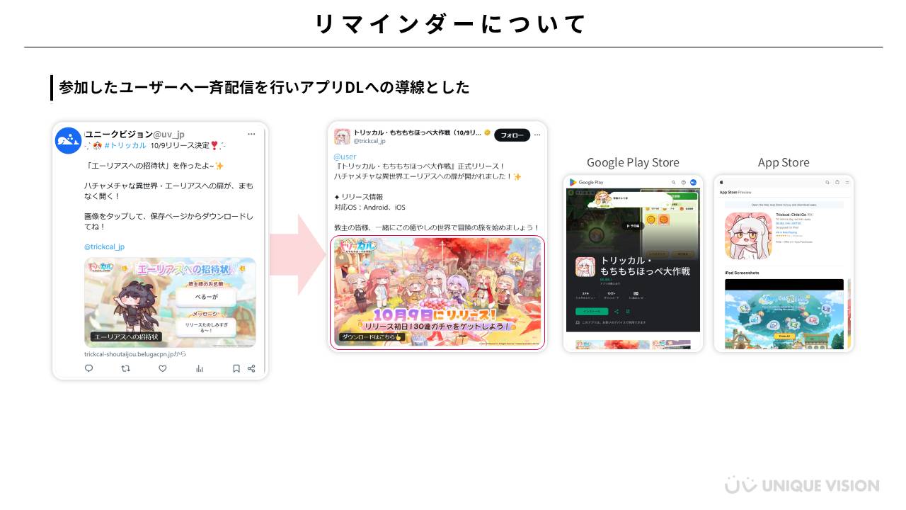 ティザー期には自分だけの招待状を作成しブランドへのエンゲージを高め、リリース日にリマインダー機能で熱量を再燃させたこの施策は、ゲームリリースの盛り上がりをより一層高めました。