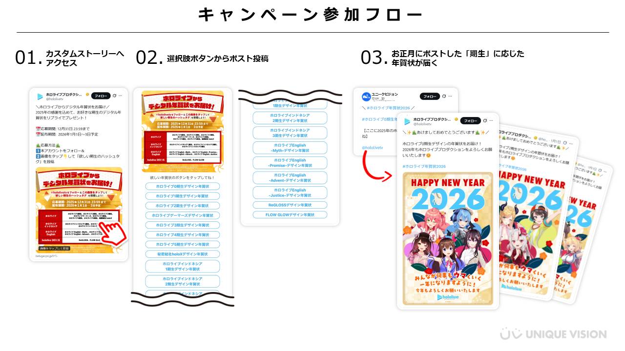 カバー株式会社は、年末年始におけるファンコミュニティの盛り上げを目的とした「ホロライブデジタル年賀状キャンペーン」をXにて実施しました。