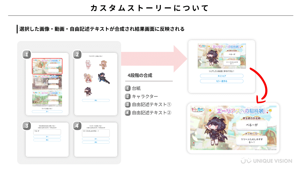 本キャンペーンの中核として、ユーザーがオリジナルのコンテンツを生成できる「カスタムストーリー」機能が導入されています。