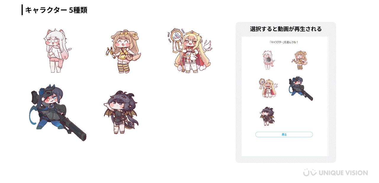 ユーザーによって選択・入力された各要素は自動で合成されます。なかでもキャラクターは動きのある素材が使われており、ユーザーごとにユニークな「動く招待状」が生成されます。これにより、ユーザーは「自分だけのコンテンツ」を作る楽しみを体験でき、ブランドへのエンゲージメントを高めるきっかけとなりました。